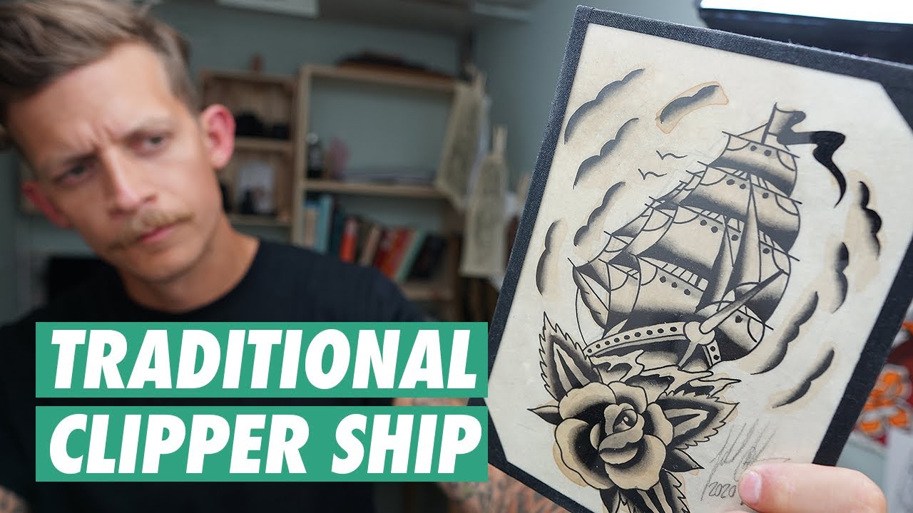 Tattoo Flash Painting A Clipper Ship Design Youtube